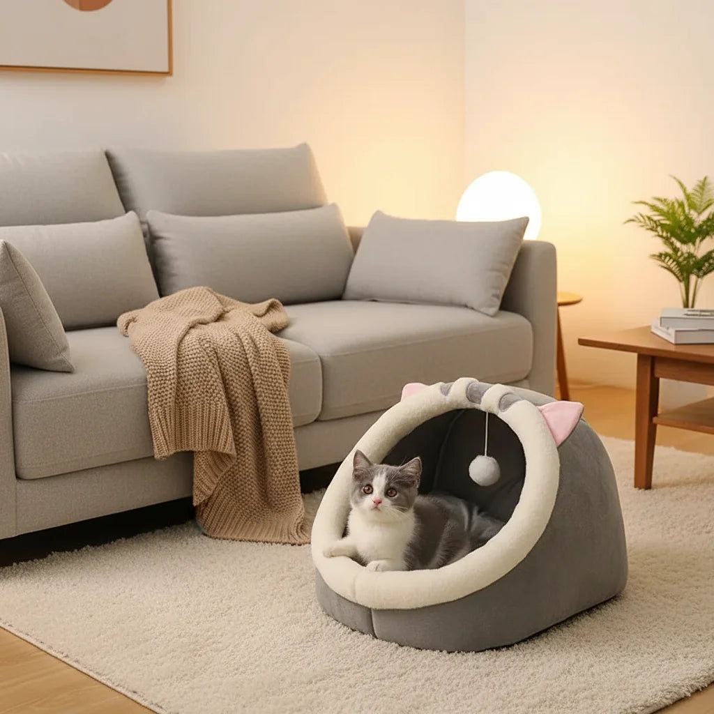 Votre chat mérite le meilleur. Ce lit ultra-doux, en forme de chat cartoon, offre un refuge sécurisant et un confort inégalé pour ses siestes. Un vrai cocon de bonheur !