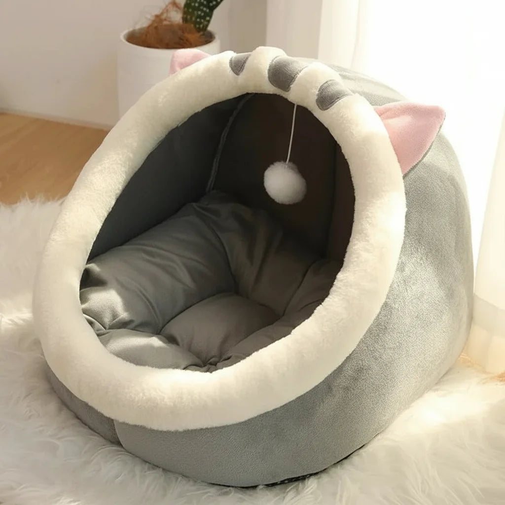 Un refuge douillet où se blottir, se sentir en sécurité et jouer avec le pompon.